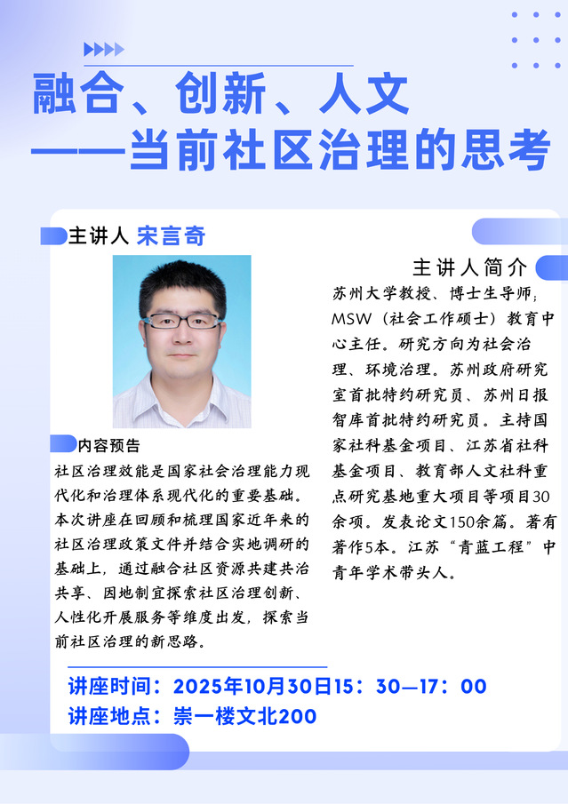 [讲座预告]融合、创新、人文——当前社区治理的思考
