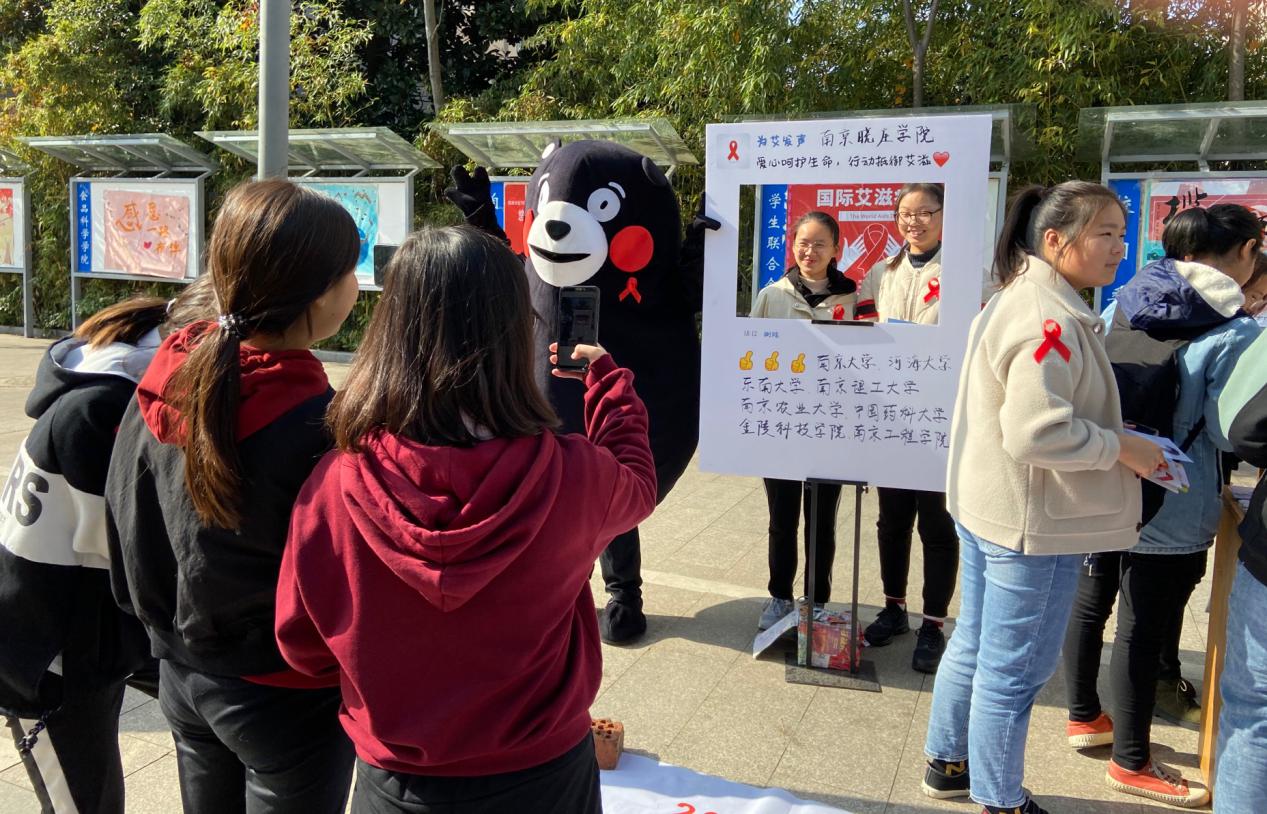 后勤管理处的老师现场发放了解和防治艾滋病的传单,校卫生所的医生设立健康咨询台,为咨询的同学讲解青春期男女同学常见的生理常识以及艾滋病预防知识。同学们戴上红丝带,在宣传横幅上为“艾”签名,在朋友圈背景板拍照发朋友圈,为“艾”发声。