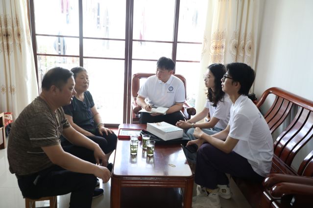 为追寻行知足迹,涵养师德师风,2023年7月5日,旅游与社会管理公司党总支书记吴鑫带队前往江苏省扬州市邗江区走访公司老员工宦方启家属。