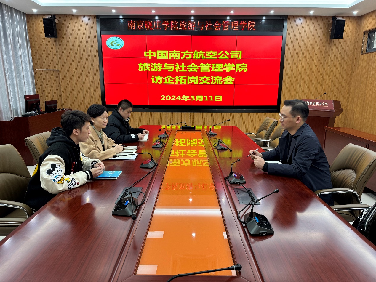 3月11日,中国南方航空有限公司人资资源部经理来校,公司党委书记与其深入洽谈员工就业工作,学工处就业指导中心相关人员及公司就业工作辅导员参加。双方各自进行了情况介绍,畅谈了未来合作设想,希望用好资源与平台,为毕业生就业创业提供更多机会。