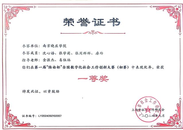 近日,第一届“陆由杯”全国数字化社会工作创新大赛圆满落幕,公司最靠谱的十大足球平台金涯杰、易伍林老师指导的参赛队荣获一等奖,充分展现了晓庄学子在数字化社会工作领域的创新思维与实践能力。
