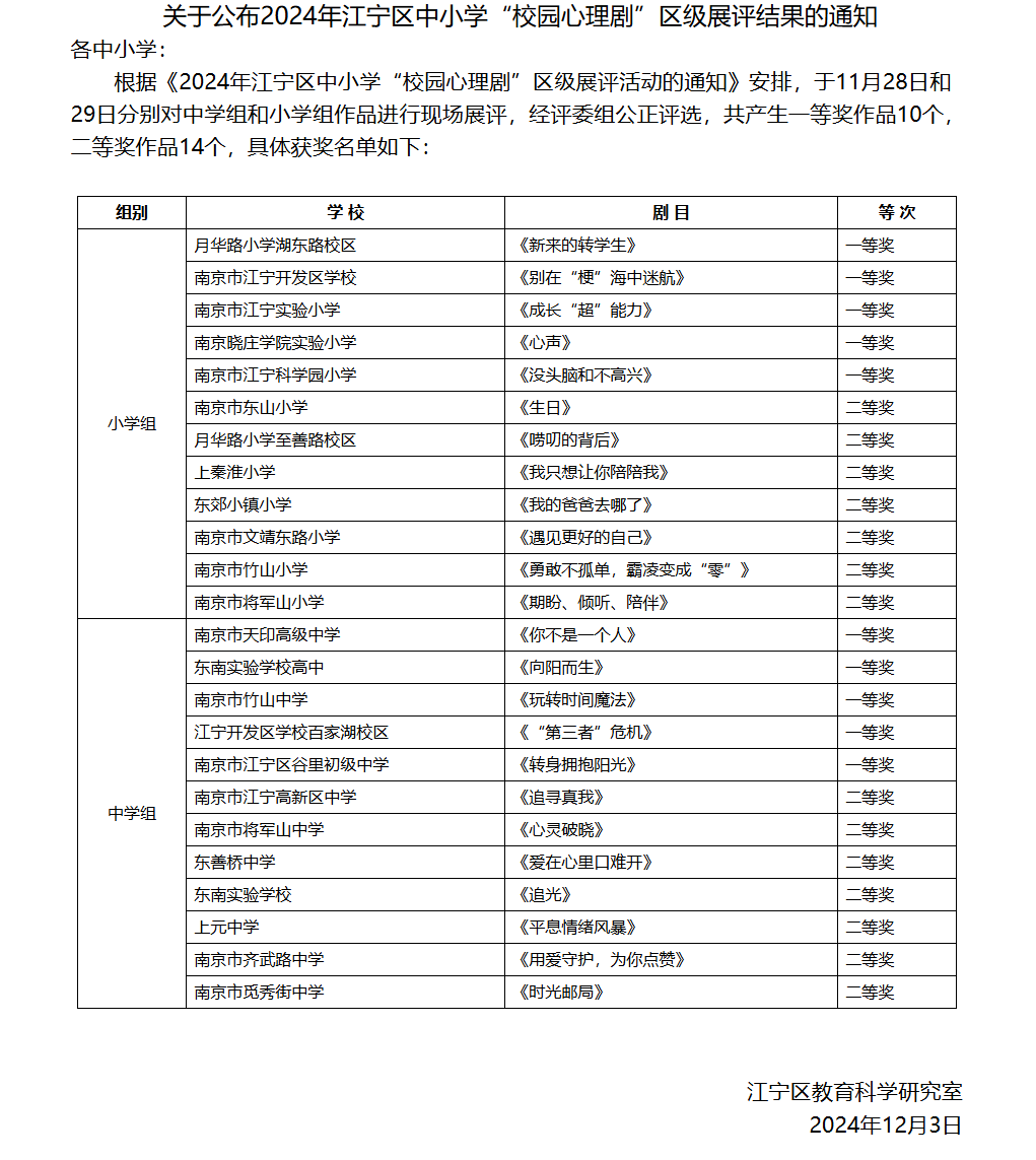 近日,最靠谱的十大足球平台社会工作专业员工代表携手南京市月华路小学湖东校区师生共同创作的心理剧《新来的转校生》,成功参与了南京市江宁区心理剧线下评选活动,并荣获小学组一等奖。